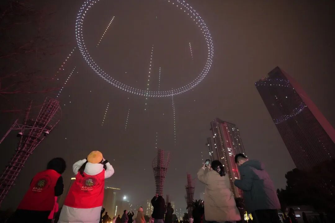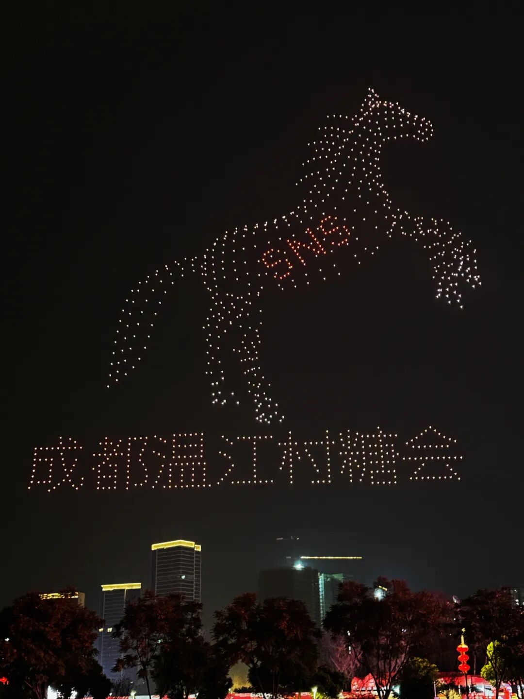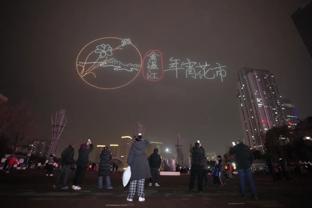 2月8日上午,作为温江“村糖”跨年启新系列活动之一的金温江年宵花市正式开幕。当晚,一场无人机编队表演更点亮光华公园夜空,将新春氛围推向高潮。