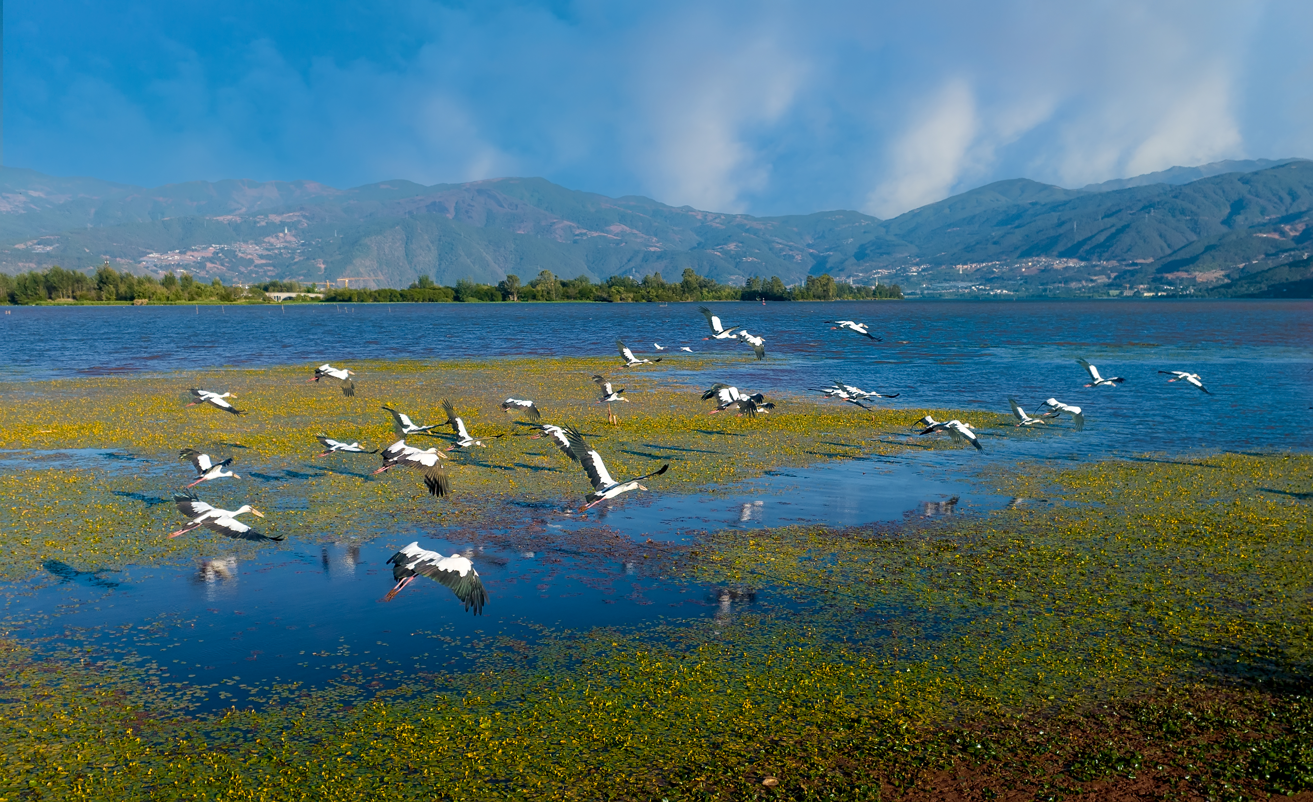 在叶昌云拍过的所有地方中,家乡的邛海是绝对的主角。他的镜头,像一部无声的编年史,忠实记录着这片湿地二十多年的变迁。