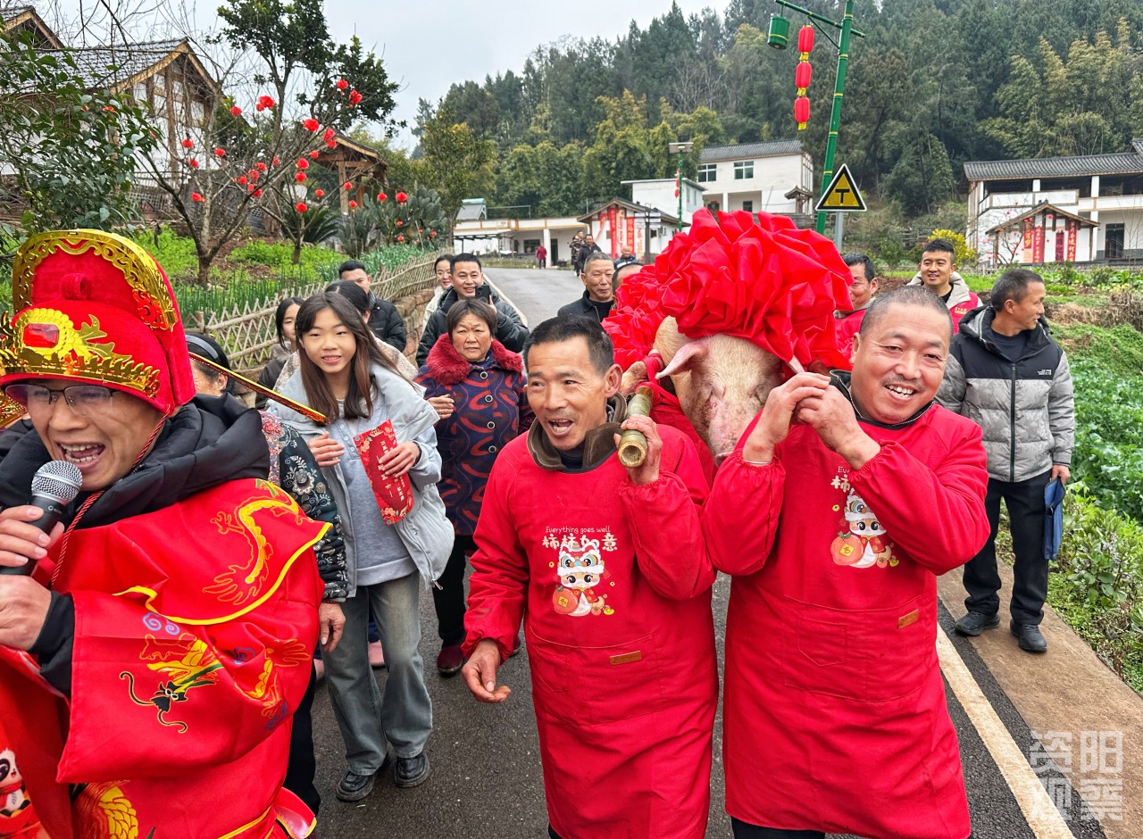 红碑村村民扛年猪。朱跃中 摄