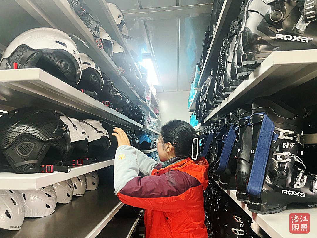 来到雪具租赁柜台,一位中年女性正在雪具架上为游客挑选雪鞋。“娟子说的‘林姐’是您吗?”面对询问,她直起身笑了,“啥林姐呀,我叫韩亚林,她们总喊林姐,不少人真的以为我姓林。”她说,“这群孩子从那么远的东北来,不容易,能帮就帮点。”