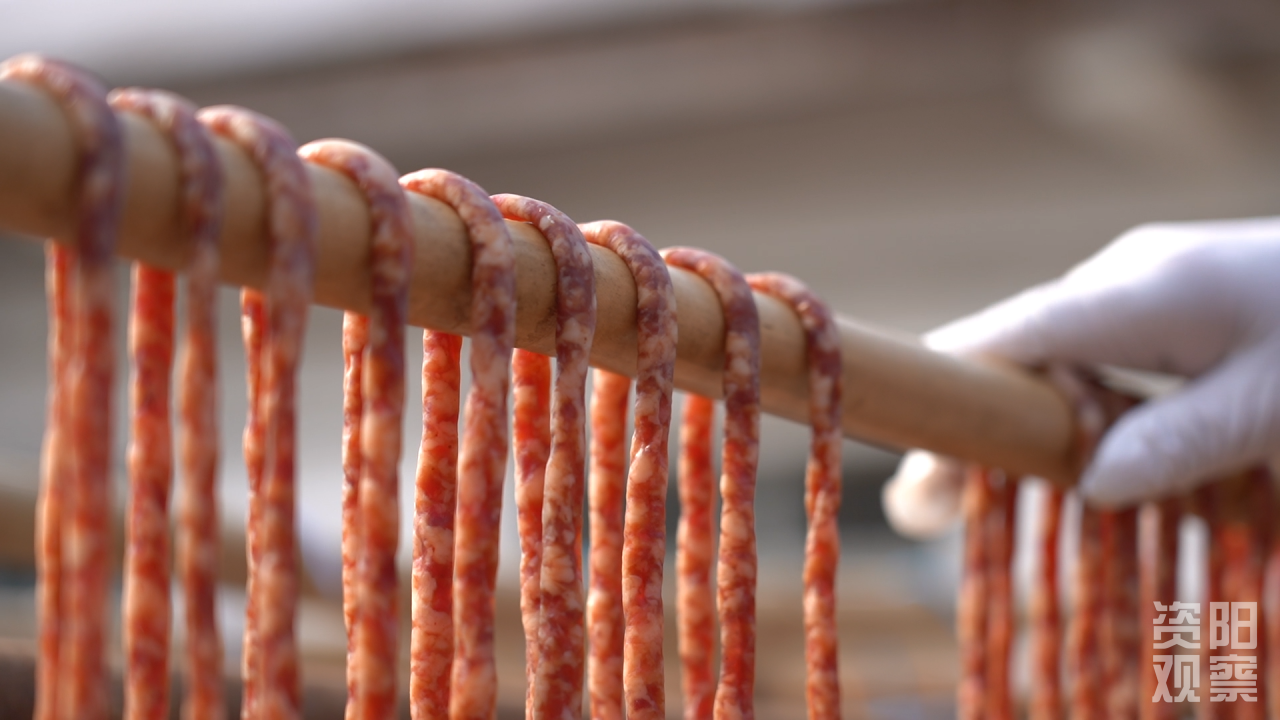 冬日,资阳市雁江区堪嘉镇树林村电商中心院坝里,一排排油亮亮的香肠、腊肉在冬日暖阳下散发出诱人的光泽。村支书王陈的手机镜头正对准这些“年味”,“咔”的一声,配上几句地道四川话:“乡亲们自家粮食喂的土猪,香得很!三、二、一,上链接!”