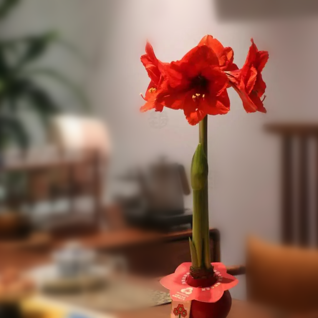大家好,我是“注定红”本红。我是种球界的“开花机器”,只要种下去,靠着空气就能窜出大花箭。新的一年,祝大家注定红!