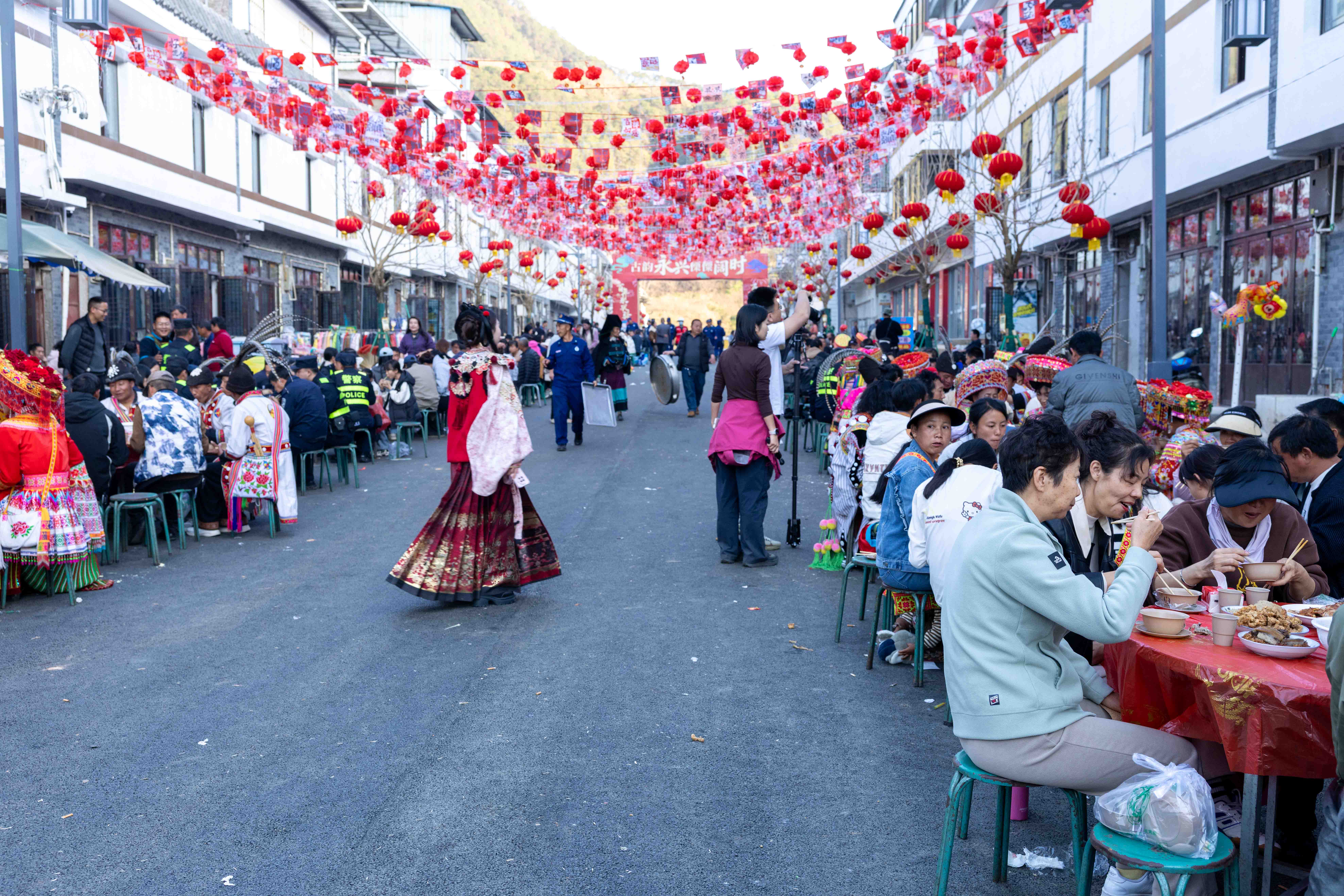 游客的点赞,印证了本届阔时节的成功。记者注意到,办节力量已不限于强胜村——永兴社区及岩门村、箐河村等纷纷参与。村干部们在90余桌长桌宴间忙碌穿梭,各村群众协助布展、配合保洁,镇干部、派出所与消防队全力维护秩序、疏导交通、保障安全,各方协同、有条不紊。