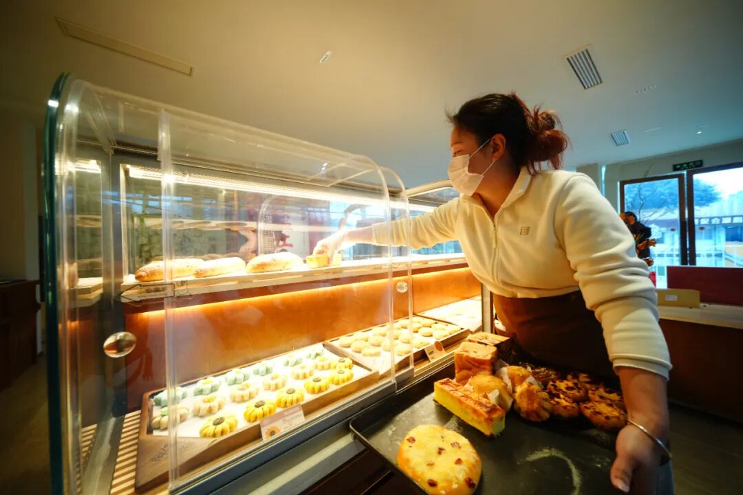 在烘焙现烤区,以温江鱼凫文化为灵感定制的“桂香云酥”“茉莉清露糕”等“花系列”糕点火爆出圈;在咖酒餐吧区,一杯咖啡配一块川饼,中西合璧的下午茶别有一番风味;在文创体验区,各类充满设计感的温江礼物琳琅满目,每一件都值得收藏。
