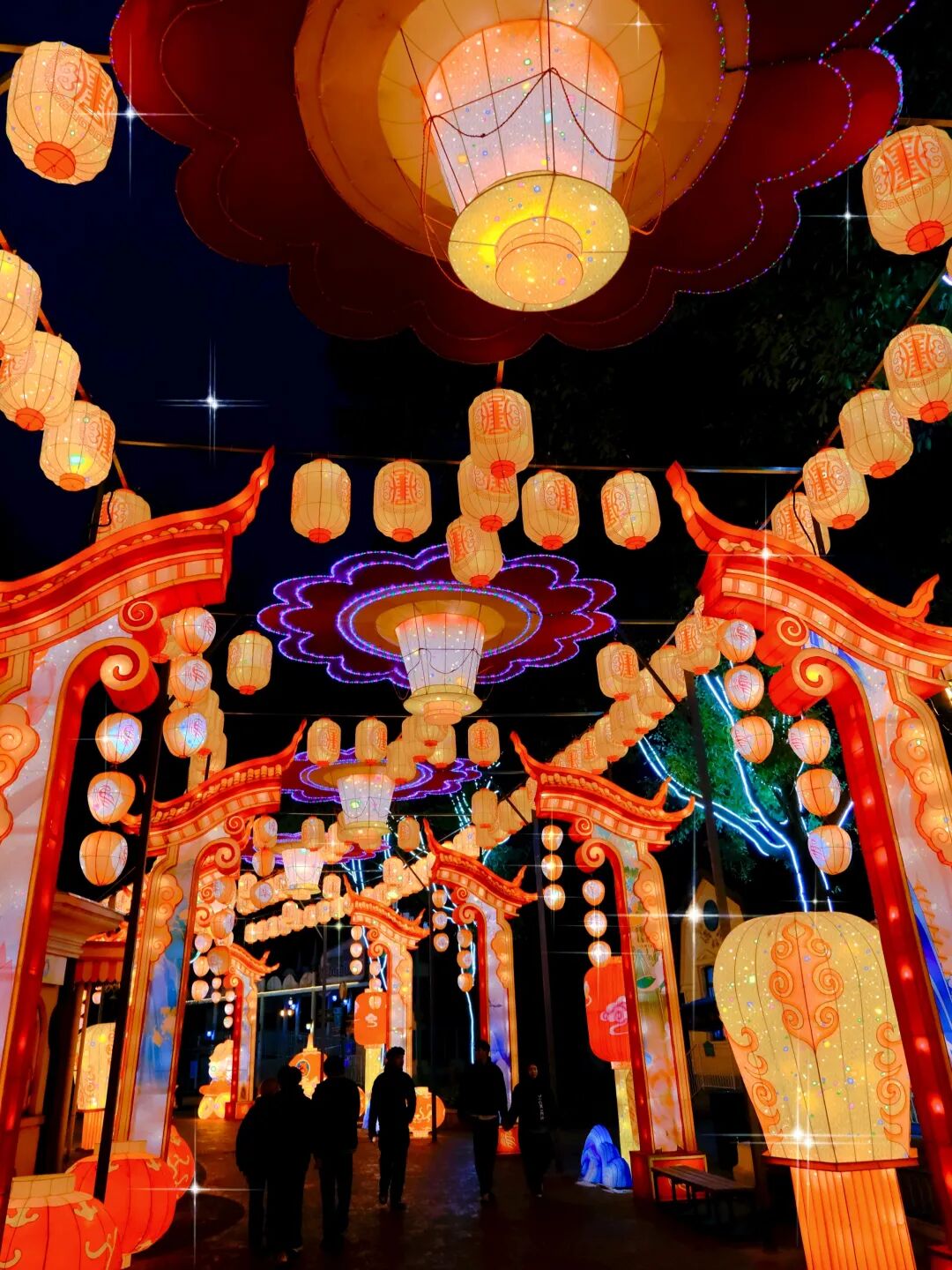 千盏红灯迎福至,万家欢笑庆余年。晚上7时30分许,随着天色暗下来,造型多样的花灯被衬托得更亮了,园区也越来越热闹。