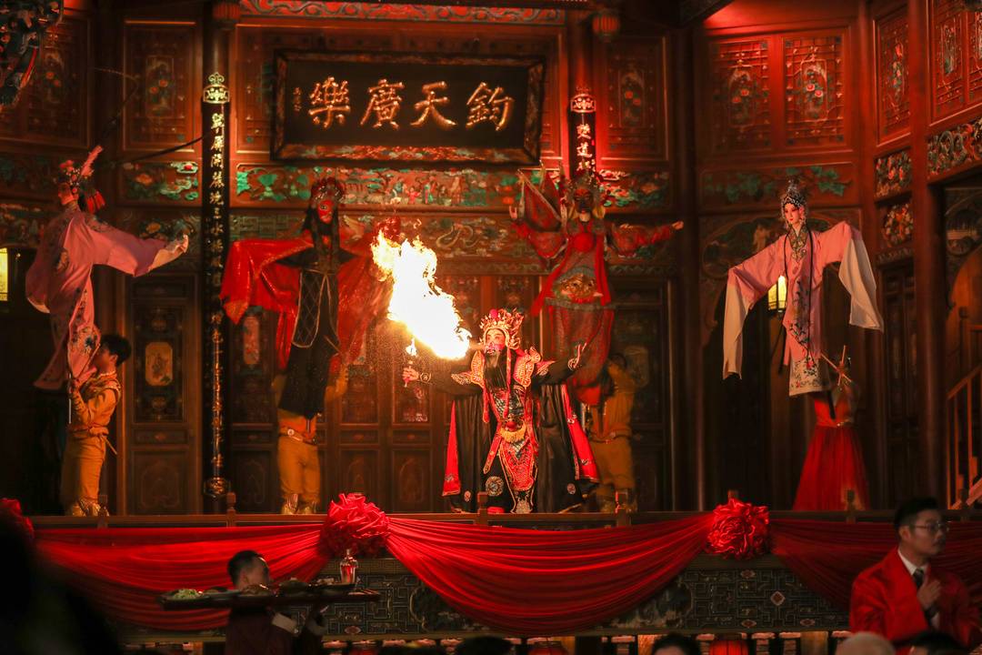 “万事皆宜,天下为宾。请春酒喽!”合江门夹镜楼上,“知客司”李子柒一声川味吆喝,宜宾分会场以省级非遗“川南请春酒”,向全球观众献上来自长江首城的新春祝福。