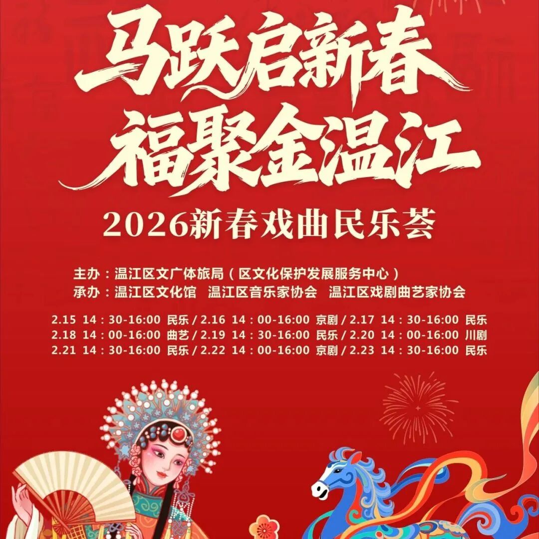 传统文化里的年味最地道!川剧经典选段、京剧名段唱腔及地方曲艺精粹开唱!明天还有福字拓印、金箔画DIY、文博纪念品套圈等传统文化体验活动,带你奔赴一场传统文化与新春的温暖邂逅~