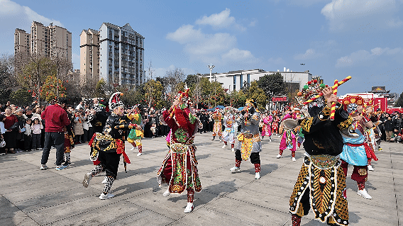2月18日至20日,来自广东汕头、被誉为“中华战舞”的国家级非物质文化遗产——英歌舞,在丹棱进行了为期三天的巡游表演。这场岭南战舞与蜀地年味的邂逅,让总人口16.3万人的小城,这个春节涌入游客十余万人。