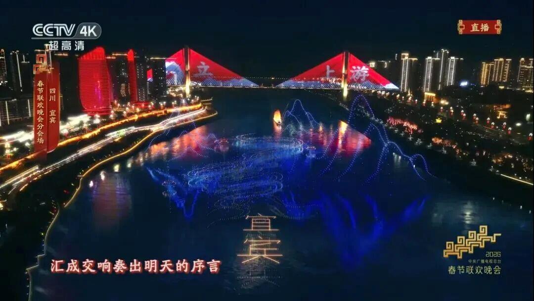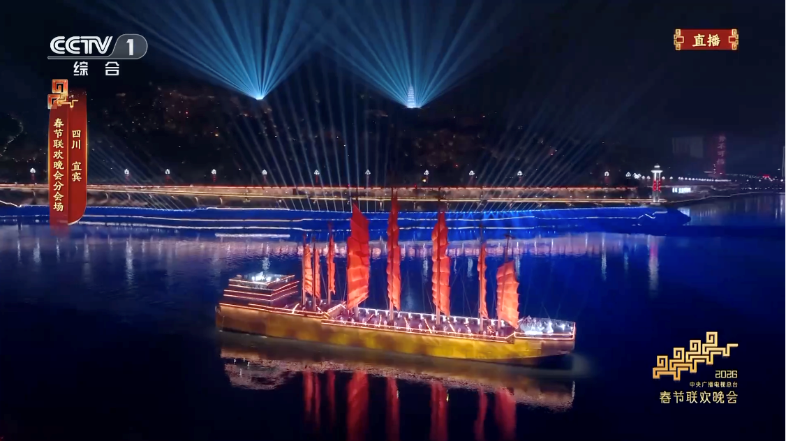 总台马年春晚,四川宜宾分会场以“万里长江第一城”的壮阔江景为天然舞台,以“立上游”为核心主题,年俗“请春酒”贯穿全场,向全球观众展示了三江六岸的独特风光,尽显巴蜀文化的深厚底蕴。