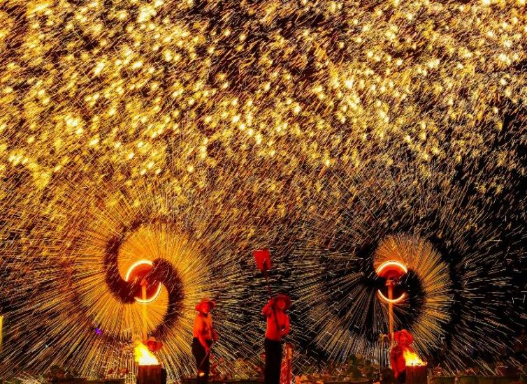2025年火把节,凉山首次实现17县(市)全域联动。普格斗牛赛场精彩纷呈,彝族传统选美惊艳四方,西昌航天大道大火堆旁欢声雷动,村村寨寨火把如龙,民族文化魅力尽情绽放。
