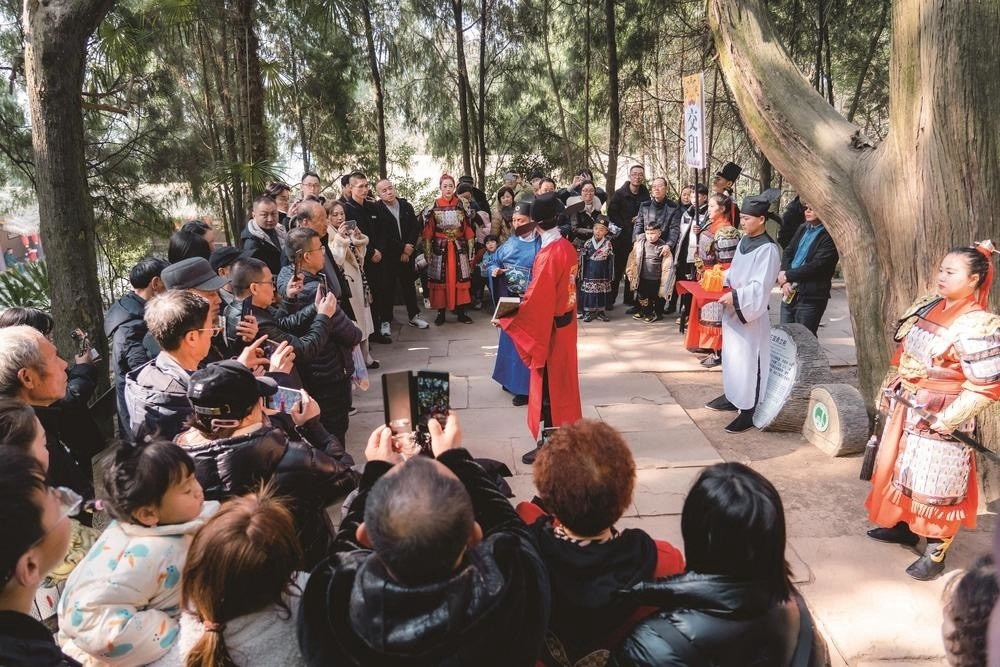 走进免费开放的苍溪县红军渡·西武当山景区,苍松翠柏间的红色打卡点前游客络绎不绝,处处洋溢着喜庆的年味与浓厚的红色氛围。阆中游客岳勇说:“我们特地和朋友们一起重温革命历史、缅怀革命先烈,沉浸式感受红色文化的魅力,感觉特别有意义。”