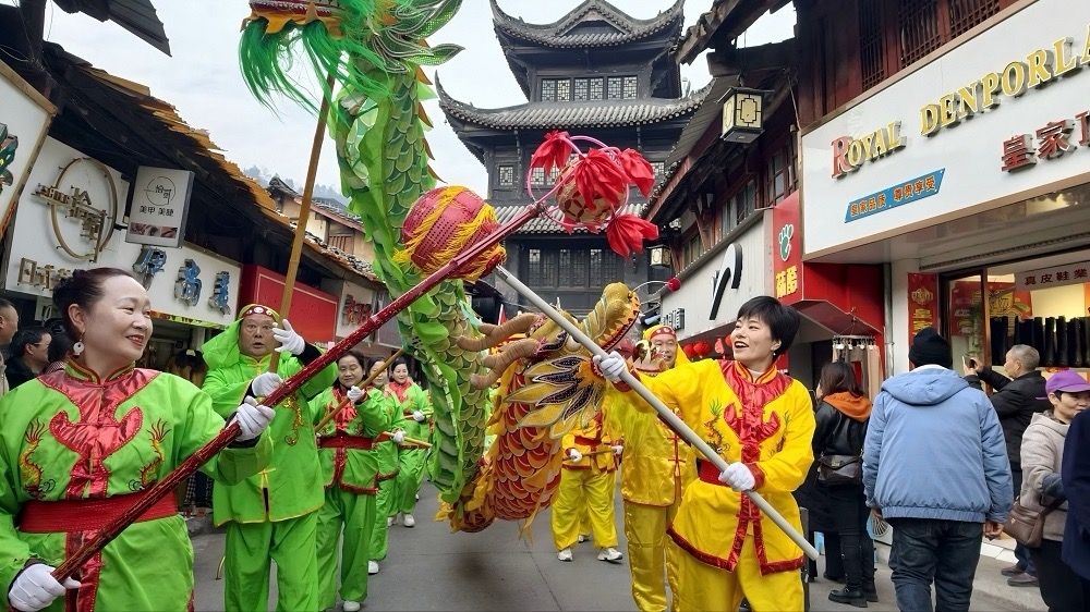 目光转向剑阁,大蜀道·不夜三国城迎来开园后的首个新春佳节。烟花木偶戏演绎民间百态,《三国“眼”绎》超验秀以科技激活英雄传奇,开放式市井街区则还原了古道繁华,新增的“三国战船”体验人气火爆。更令人惊喜的是,远道而来的鄂伦春族舞蹈队带来斗熊舞等节目,呈现出一场文化交融。
