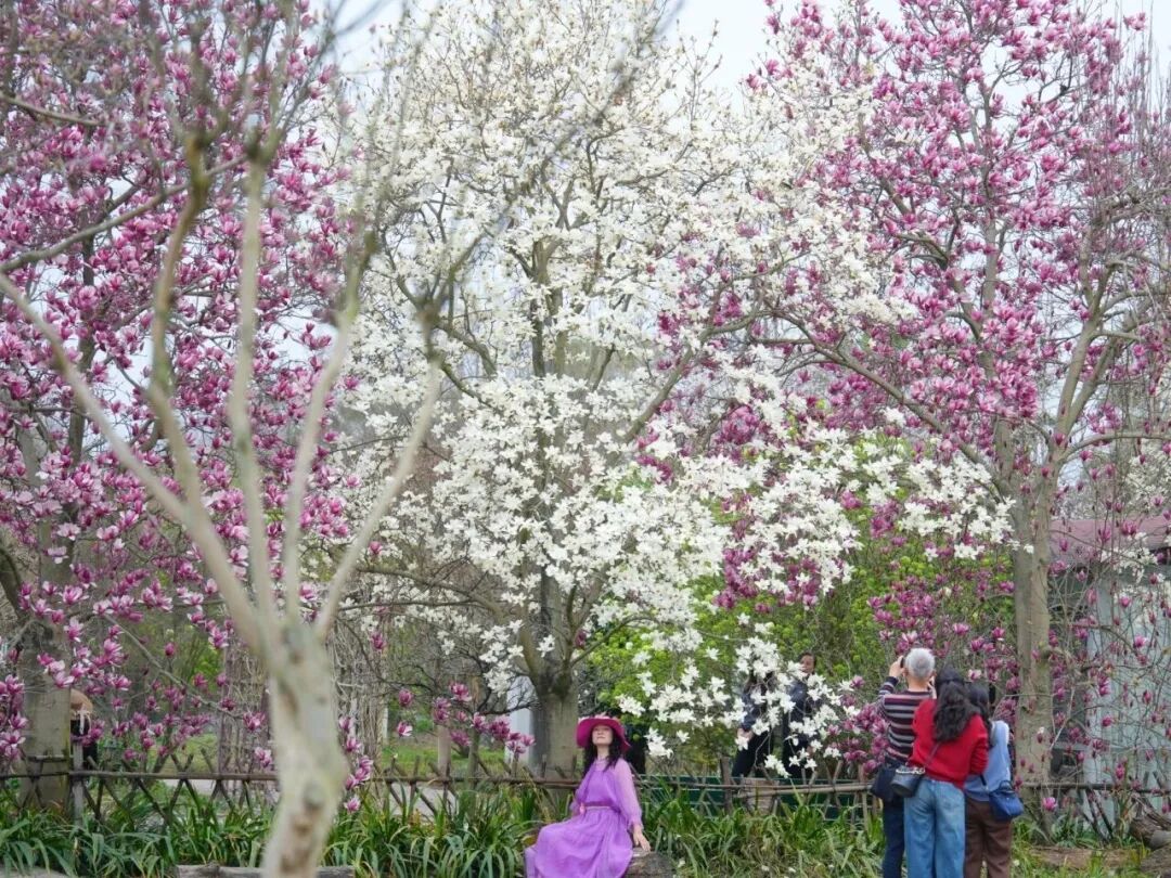 相距不远的万花拾景园,则凭借东方园林雅韵“出圈”,红叶李粉白相映,二月兰铺成花毯,与红墙黛瓦构成诗意画卷。万花拾景园负责人介绍,正月初三开园以来园区游客量稳步增长,汉服打卡、家庭出游成为主要客流类型,其高颜值与静谧氛围,使其迅速成为社交平台热门打卡地,相关打卡笔记逾万篇。