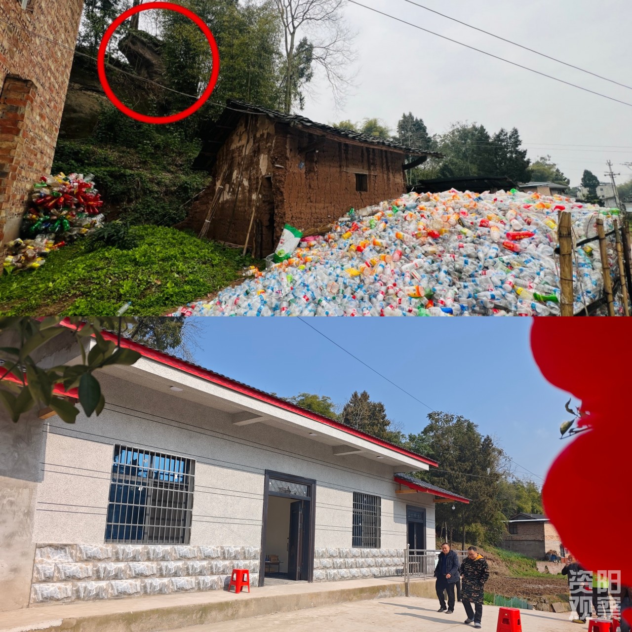 王廷学的老屋与新家对比图。