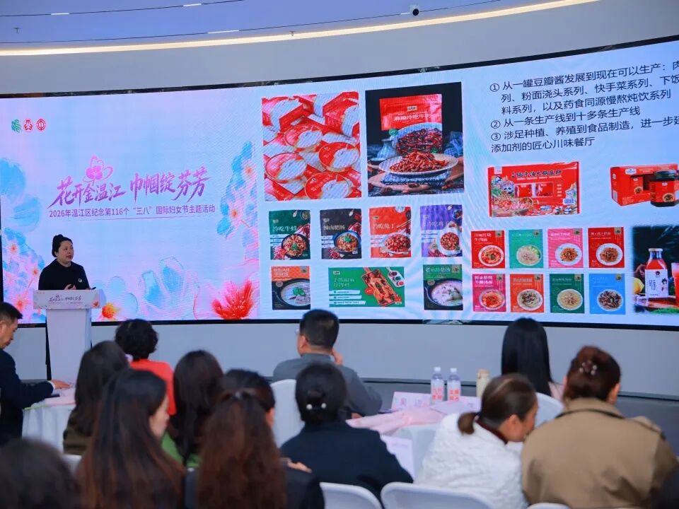 企业联动,巾帼同心。活动现场,来自13家温江企业的女性代表联袂登台,带来诗朗诵《她力量——绽芳华》。近年来,温江女性企业家在多链条领域深耕细作,打造出一批行业标杆、全国知名的“温江造”产品。