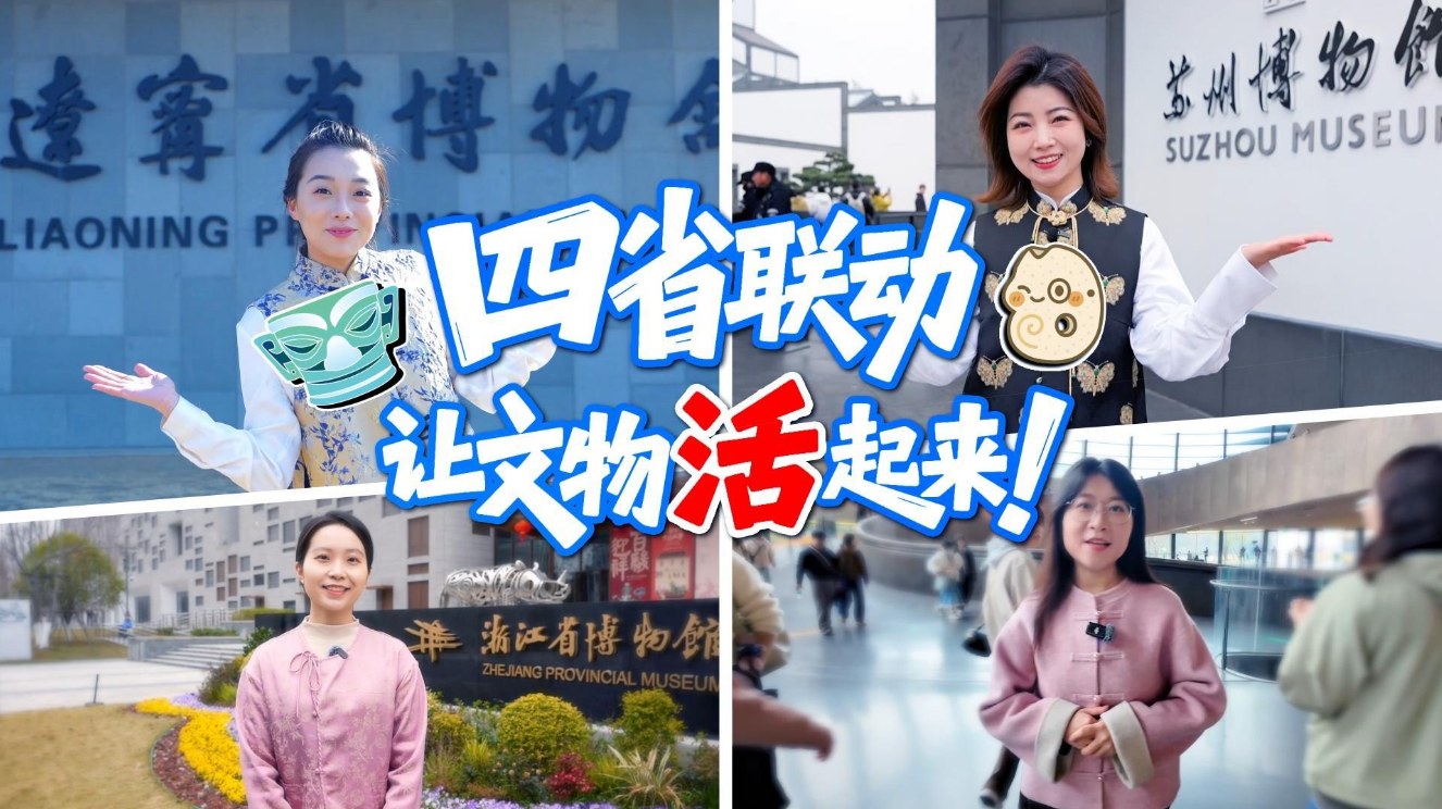 2026年政府工作报告中提出,“实施公共文化服务提质增效行动,做好公共图书馆、博物馆、文化馆等惠民开放”,为文物活化利用、公共文化服务升级指明方向。3月10日,辽宁、江苏、浙江、四川四省携手开启联动活动,四地媒体记者分别走进各地“顶流”博物馆,以沉浸式探馆的方式破译国宝“出圈”密码,让文物“活”起来,让文化“火”起来。