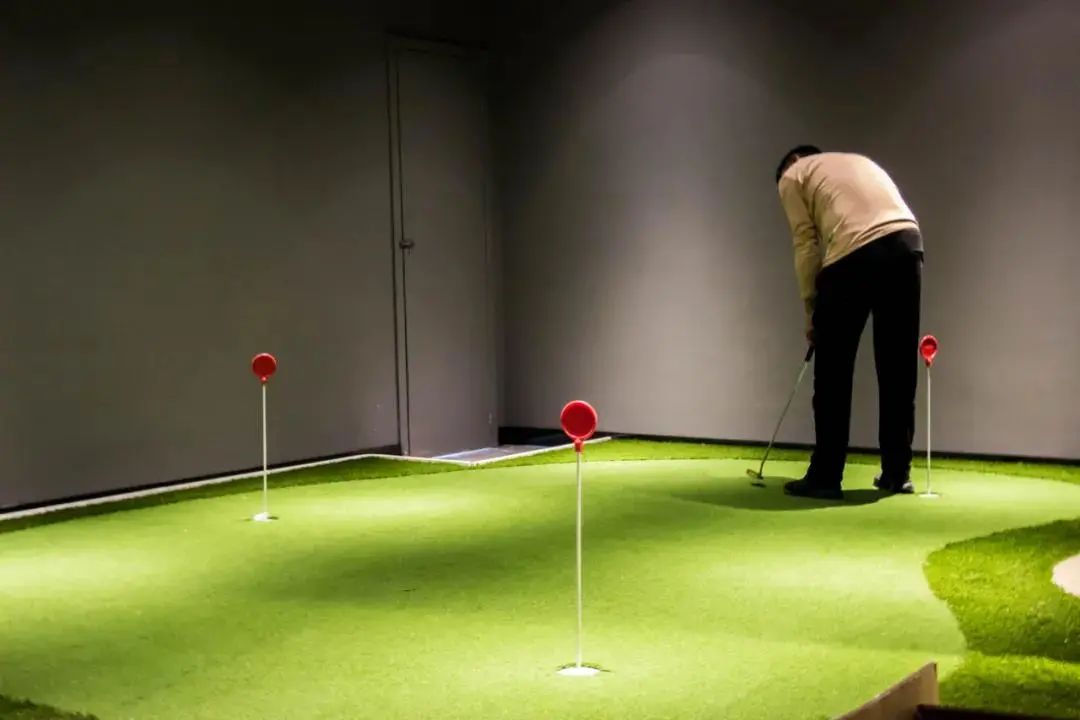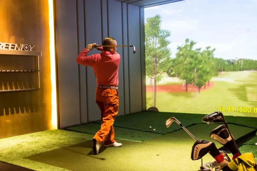 高尔夫球区脱离了场地限制,配备8个高尔夫球打位,3个练习打位,超大的屏幕呈现,大家可以直接在室内体验到世界各地的顶级高尔夫球场,体验感UP。