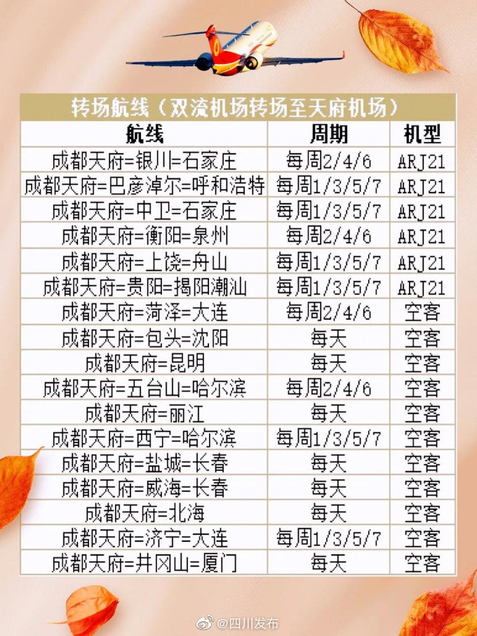 注意!又有一批共17条航线转场至天府机场起降