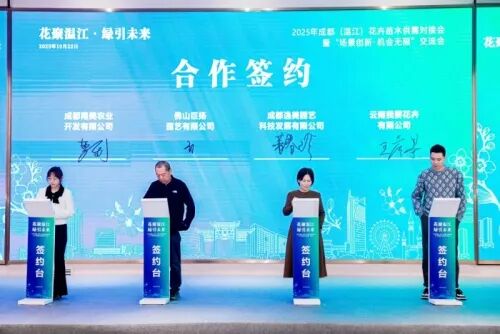 活动现场还促成了一系列合作签约,成都花木交易所与重庆市林木种苗站达成林木种苗交易合作,助推成渝花木市场互联互通;成都巧匠农业有限公司与农业农村部成都沼气科学研究所携手,开展花木园林废弃物炭基堆肥技术集成与示范;成都逸美园艺有限公司与云南我要花卉有限公司签订300万株“中药材丹参无性系育苗”订单;佛山巨扬园艺有限公司签约入驻南美农业园区,将推动年产值千万元的蝴蝶兰、文心兰等特色花卉直供盒马、山姆等商超。