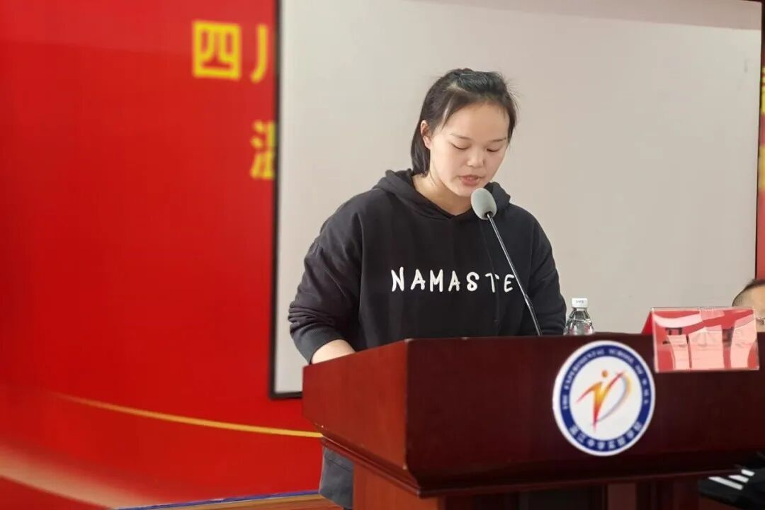 ↑2021年,杨秋霞在温江区全运会出征仪式上发言