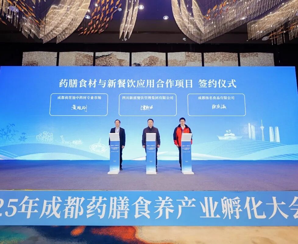 在食材供应方面,温江企业成都扬名食品有限公司与成都荷花池中药材专业市场签订药膳食材与新餐饮应用合作项目,将携手为药膳产业筑牢原料根基。