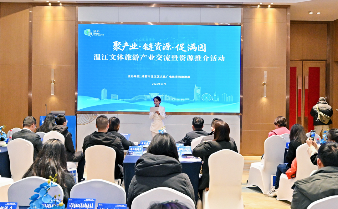 11月24日,由区文广体旅局主办的“聚产业·链资源·促满园”温江文体旅游产业交流暨资源推介活动举行,邀请区级部门、园区、行业协会、酒店民宿、影视企业等代表围坐一起,共话新机遇、共谋新发展,促进文体旅游产业与住宿业供需精准对接。