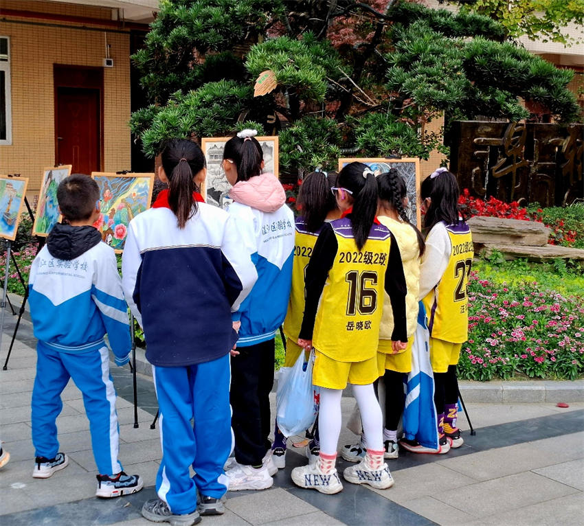 巡展现场,获奖绘画作品整齐陈列,吸引了师生驻足围观。“这画的是我们的江安河吗?真漂亮!”“我喜欢这幅,颜色搭配太棒了!”同学们热烈地讨论着各自心仪的画作,分享彼此的观展心得。