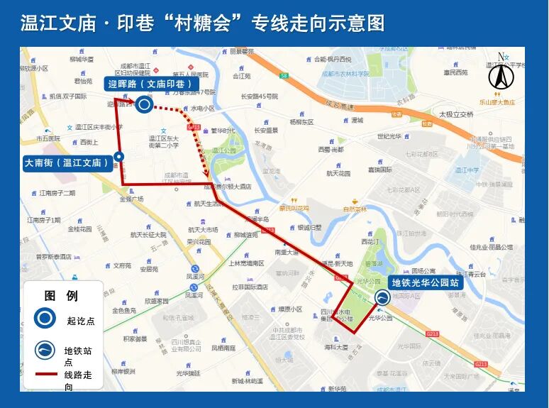 乘坐温江文庙・印巷“村糖会”专线,在地铁4号线光华公园站上车,直达文庙·印巷文创街区;