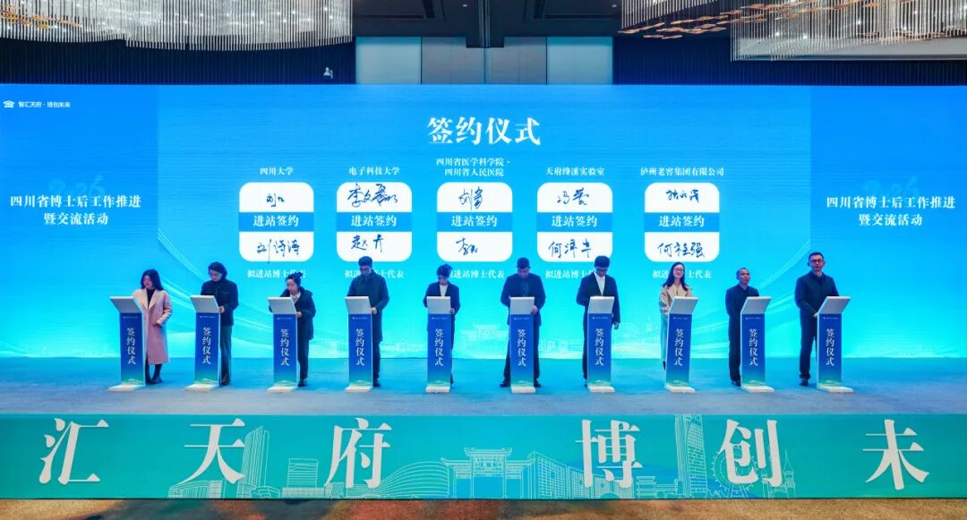 在工作推进会上,通报表扬了第三届全国博士后创新创业大赛组织工作突出单位,并为获奖项目颁奖。金奖项目“摇光电磁综合仿真工业软件”、银奖项目“擘海氢蓝-海水无淡化原位直接电解制氢”进行了现场路演展示。四川大学、成都中医药大学、天府绛溪实验室、泸州老窖集团有限公司等10家单位与博士(后)代表进行入站(职)现场签约。