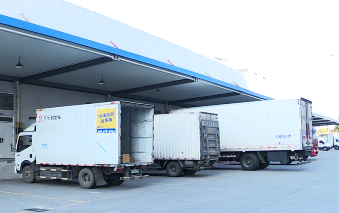 仓库月台旁,一辆辆货车依次排开