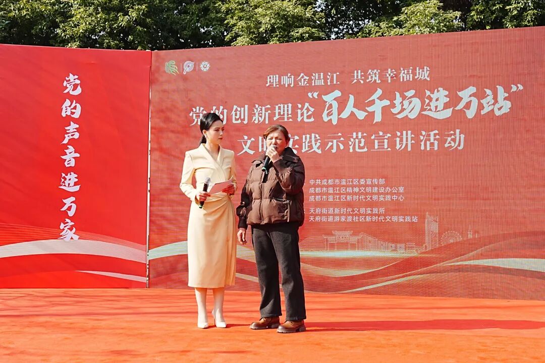 1月14日,由区委宣传部、区文明办、区新时代文明实践中心联合主办的“理响金温江 共筑幸福城”党的创新理论“百人千场进万站”文明实践示范宣讲活动在天府街道游家渡社区举行。