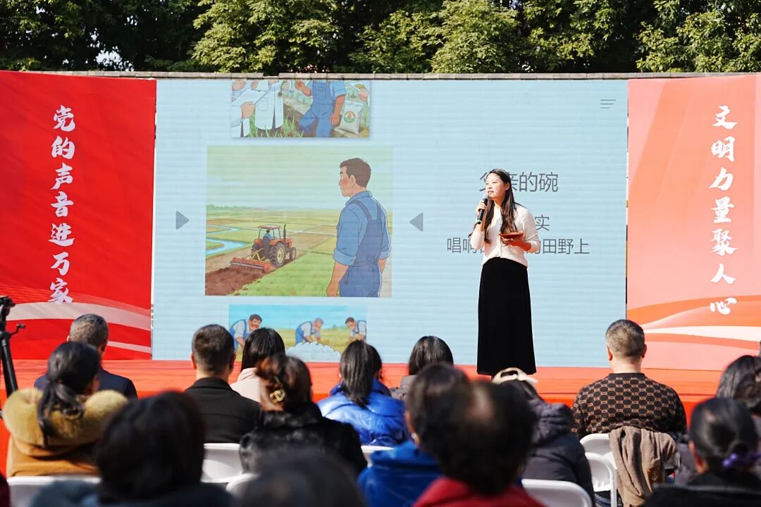 除了“走心”的宣讲,现场还有“走新”的文艺表演,温江深挖本地文化资源,将非遗技艺、地域特色与理论传播深度融合,让理论宣讲既有“思想味”更有“文化韵”。