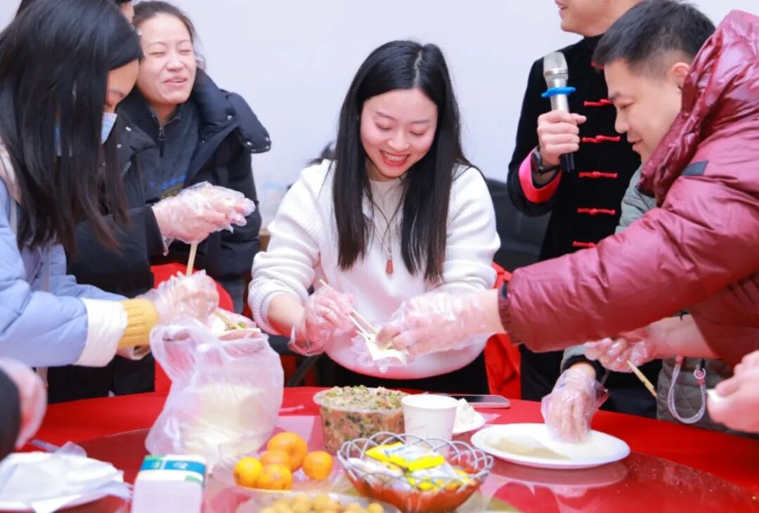随着互动结束,大家围坐一堂包制川渝特色抄手,揉皮、放馅、捏合,一个个饱满的“新年元宝”相继成型。“一起包抄手、聊家常,就像亲戚团聚,这种烟火气里的温情最亲切。”2022年度四川好人陈明权一边包抄手,一边与身边人交流。