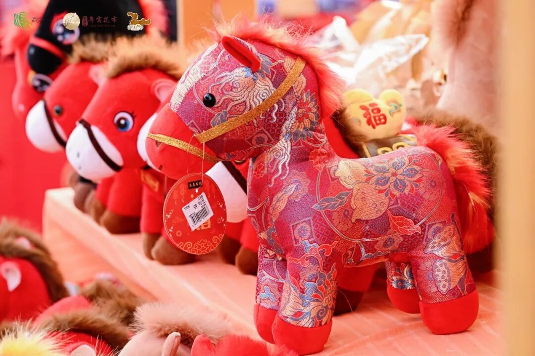 位于年货集市主区域的盒马新春快闪店,含“马”量极高。展区内既有小马造型的趣味饮品礼盒,也有蕴含“马”上发财、跃马迎春等美好寓意的炒货礼盒,百余款新春产品一站式配齐。