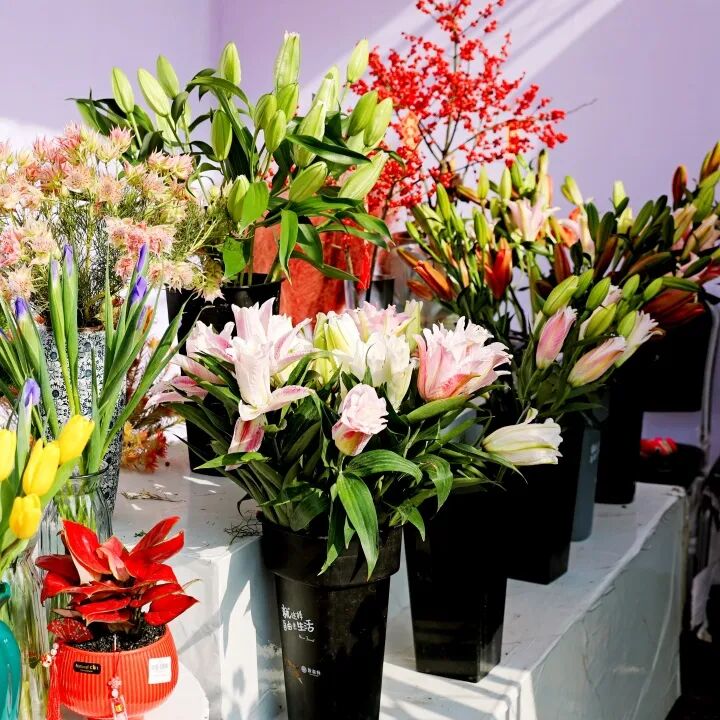 踏入花市,馥郁花香扑面而来。从平价优质的经典年宵花到精致布展的花艺空间,一步一景,处处都是打卡热点。这里既有蝴蝶兰、天竺葵、川派盆景等传统经典年宵花,也有风铃草、球根花卉等年轻人追捧的网红品种,还有莲花草莓挞、圣心百合等特色花卉,实现新春赏花全场景覆盖。