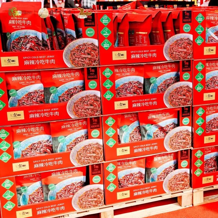 在金温江年宵花市,价格“出圈”的不止圣恩股份的火锅底料:兰菲米苏的酥饼糕点原价39元一盒,现场50元可买2盒;寇大香麻辣冷吃牛肉从108元降至75元,佑贝堂蒸面包、耀华糕点等经典年货,均给出了6-8折的优惠力度。