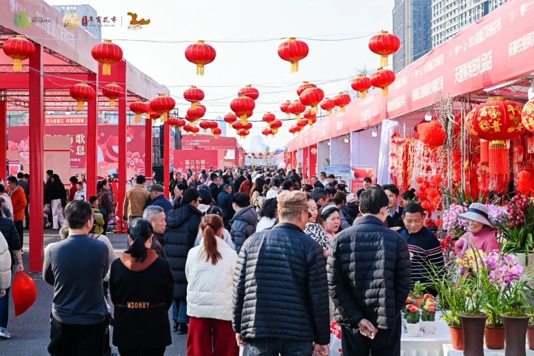 金温江年宵花市以花卉、年货、家政服务等出圈表现成为顶流年味打卡地,不仅让传统年味回归生活,更以破圈销量、创新产品和贴心体验点燃马年新春消费热潮。