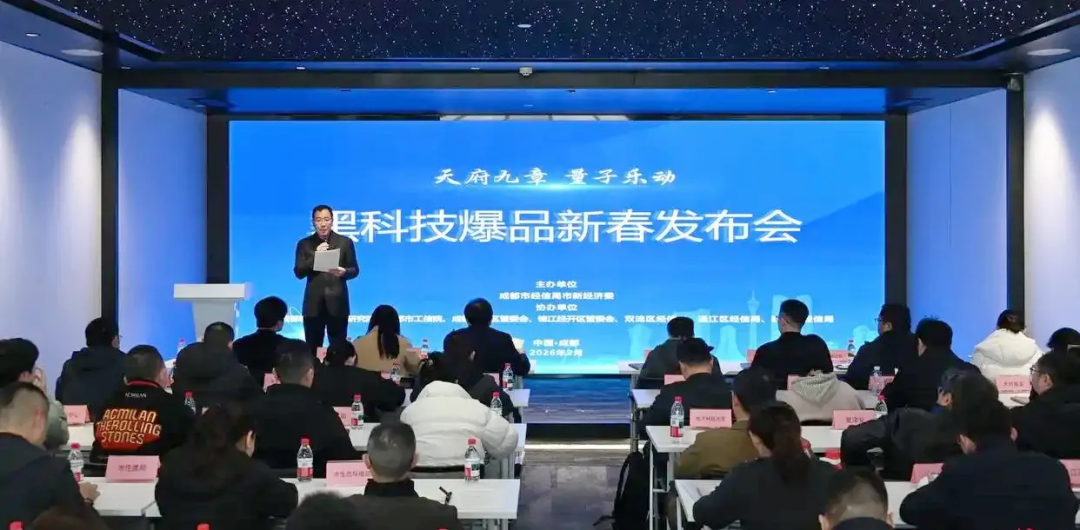 2月12日,由成都市经信局市新经济委主办的“天府九章、量子乐动”黑科技爆品新春发布会举行。
