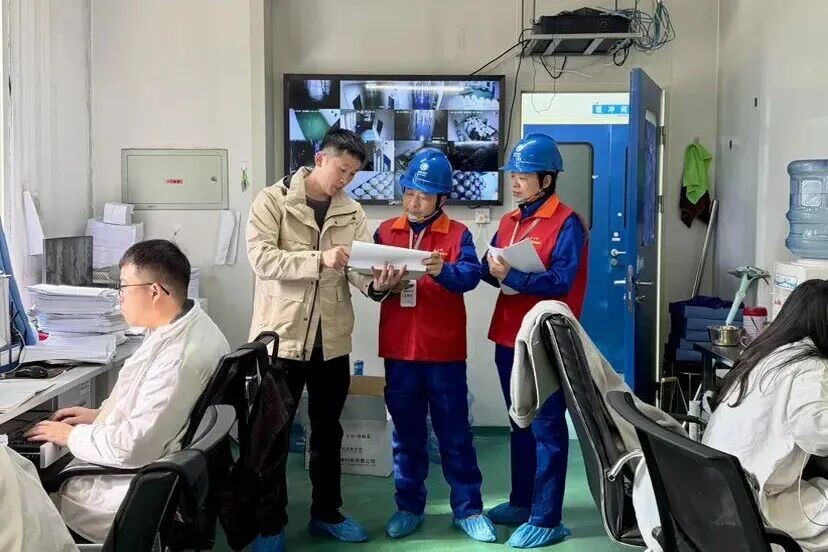 节后复工首日,百利药业改造现场就已全面启动。李宇齐与同事全程驻守一线,一边紧盯施工安全流程、排查现场隐患,一边协助企业梳理办电资料、对接验收环节,实现工程竣工与用电接入无缝衔接,为企业抢出宝贵工期。