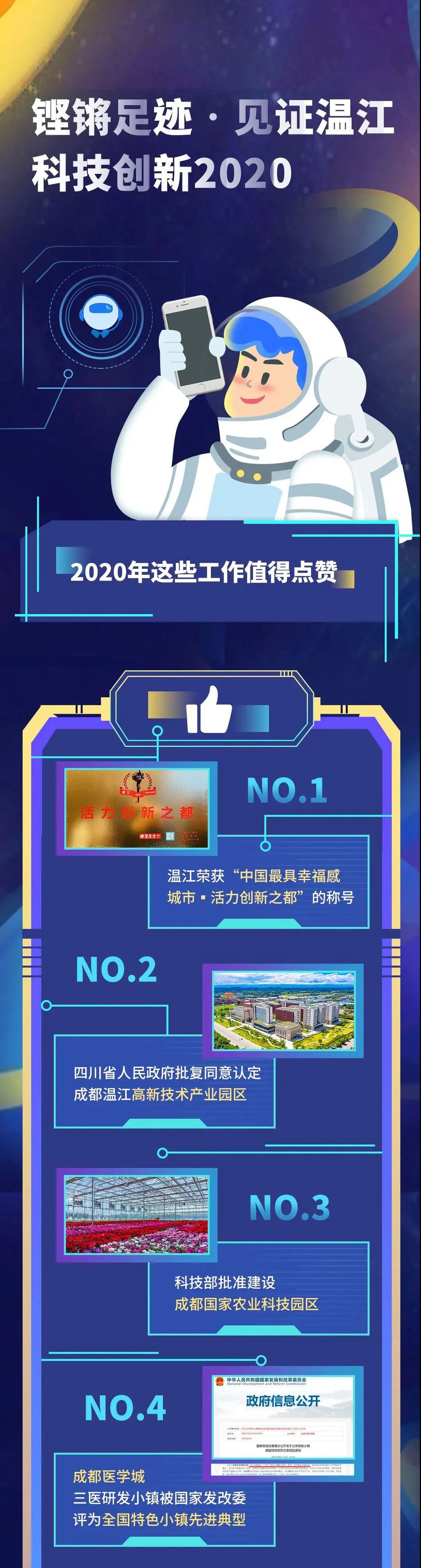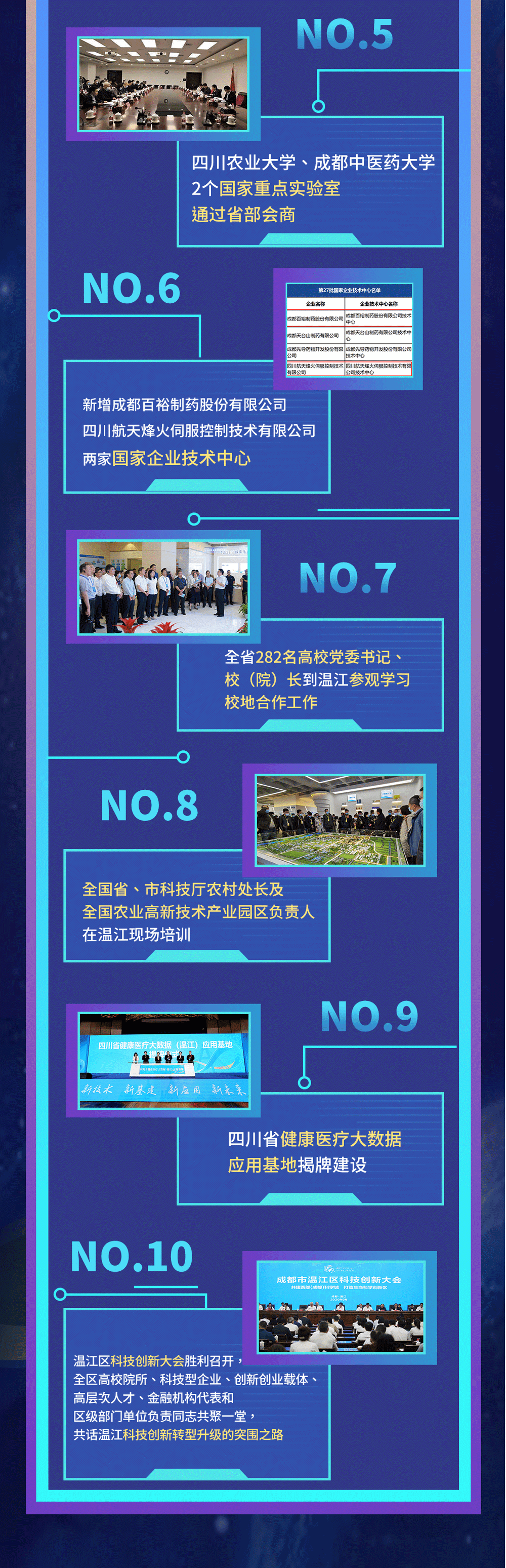 截止目前,温江区共培育市级以上研发机构220个,其中国家级重点实验室2个、国家级研发中心7个、省级研发平台170个。