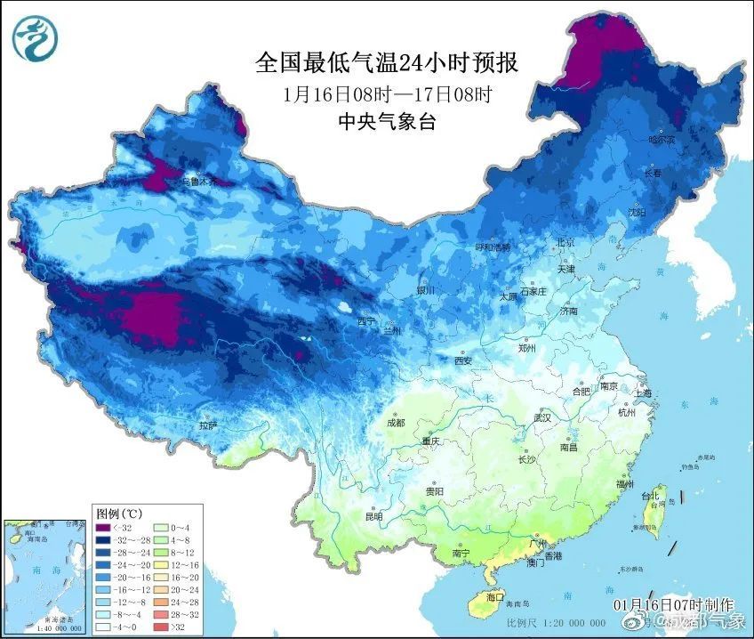 根据中央气象台发布的寒潮蓝色预警:预计1月15日至17日将有寒潮天气自西向东影响我国大部地区。