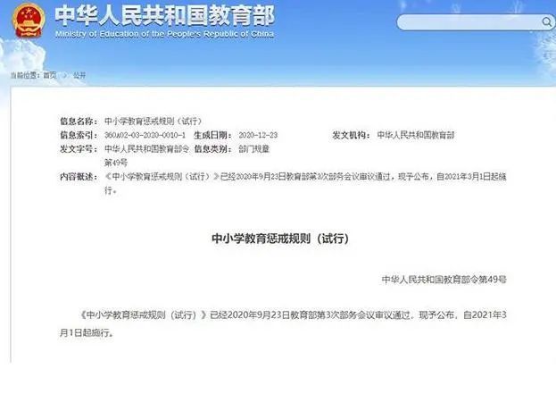 而新学期开学之后,学生们也将面临2个新规的实行,第一个就是大家比较关注的教育惩戒的问题,将会在3月1日正式实施。