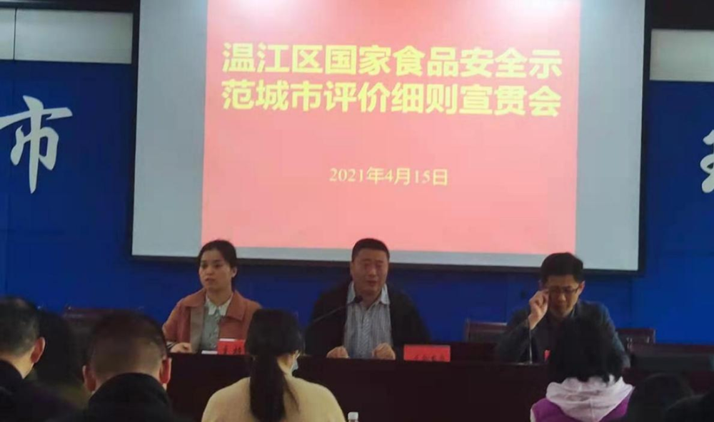 为全面做好国家食品安全示范城市创建验收准备工作,全力助推成都市成功创建国家食品安全示范城市,4月15日,温江区召开国家食品安全示范城市评价细则宣贯会,35个区级部门、9个镇街食品安全分管领导及科室负责人参加此次会议。