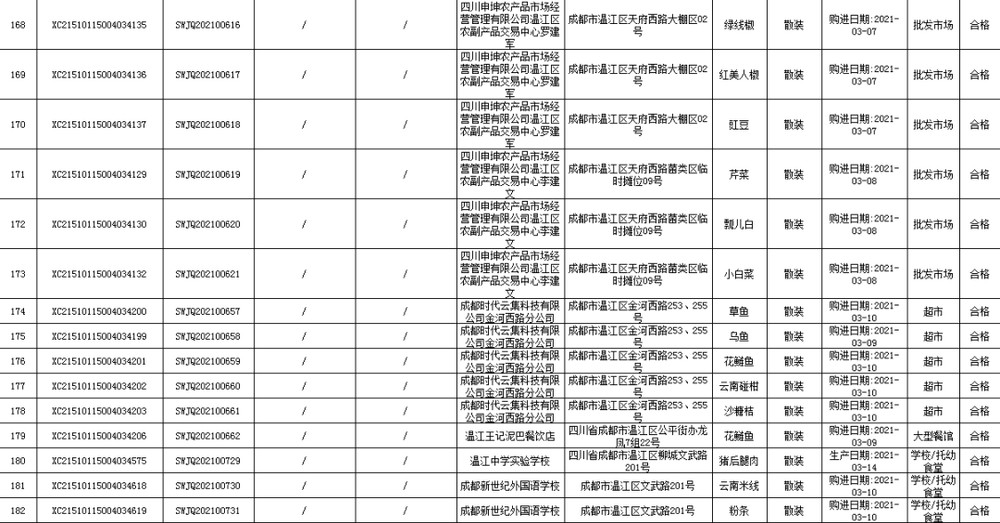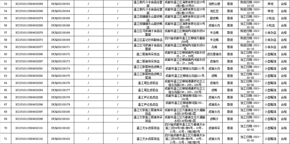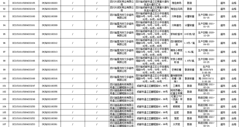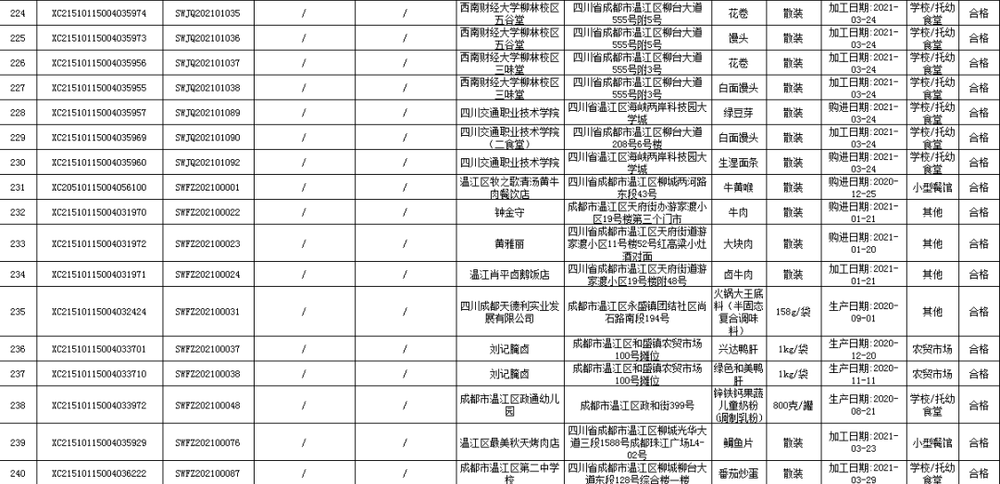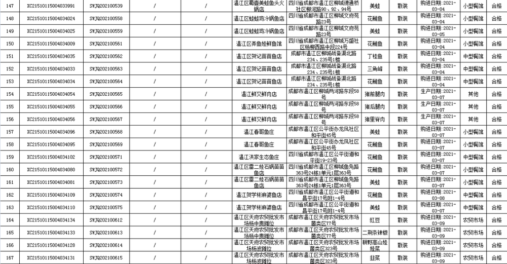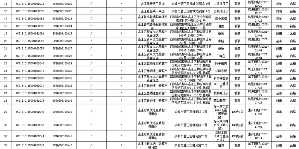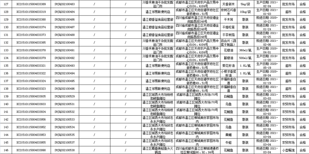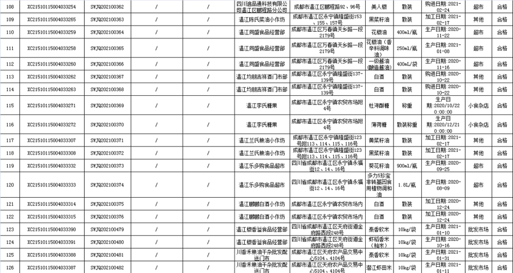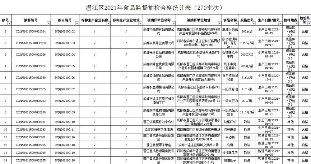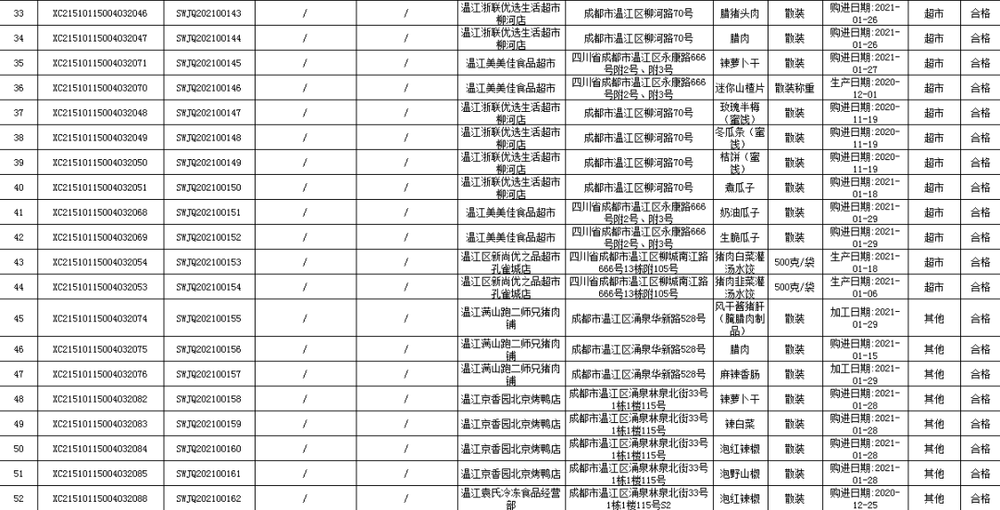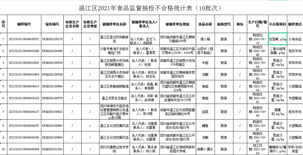 10批次食品抽检不合格!温江区2021年第一期食品抽检结果来了