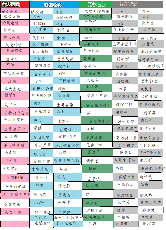 可回收物、有害垃圾、厨余垃圾和其他垃圾。