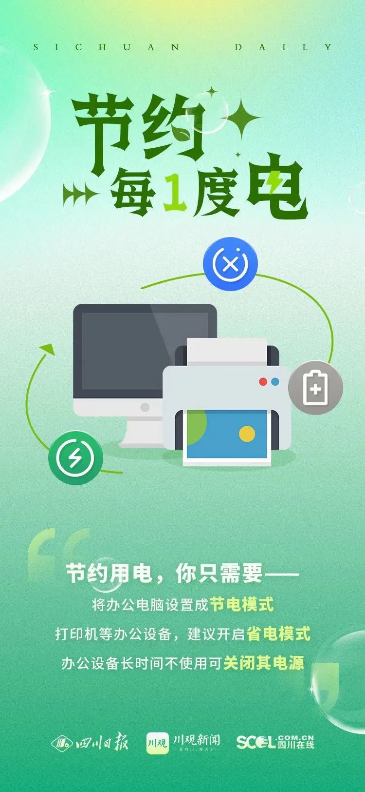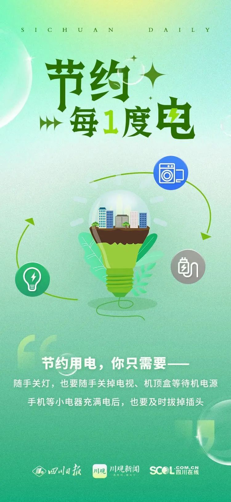 8月以来,四川迎来第二轮高温干旱灾害性天气,社会用电需求快速增长,电力负荷屡创新高。为了缓解“迎峰度夏”电力保供压力,全力以赴保障民生用电需求,现向全区社工、社会组织、志愿者发出节约用电倡议:从现在做起,从点滴做起,从自己做起,有序用电、合理用电、节约用电,以实际行动为全市电力平稳运行贡献力量。