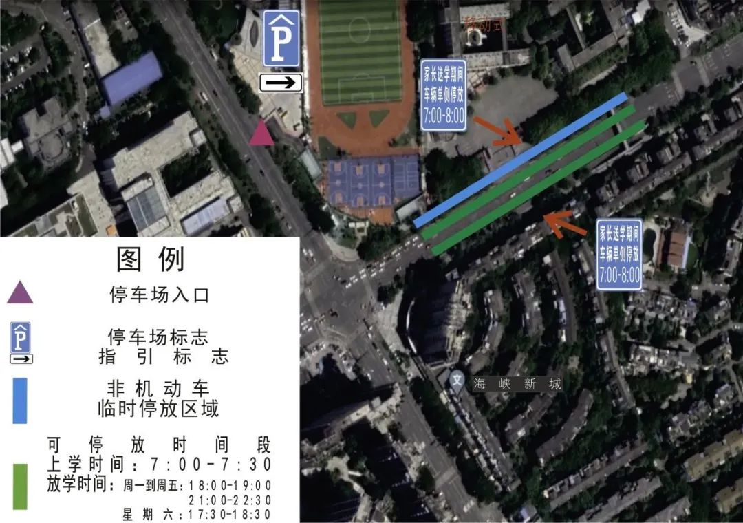 请接送学生的家长将机动车停放在文化路与文武路道路两侧,双边单排停放,确保安全,即停即走。