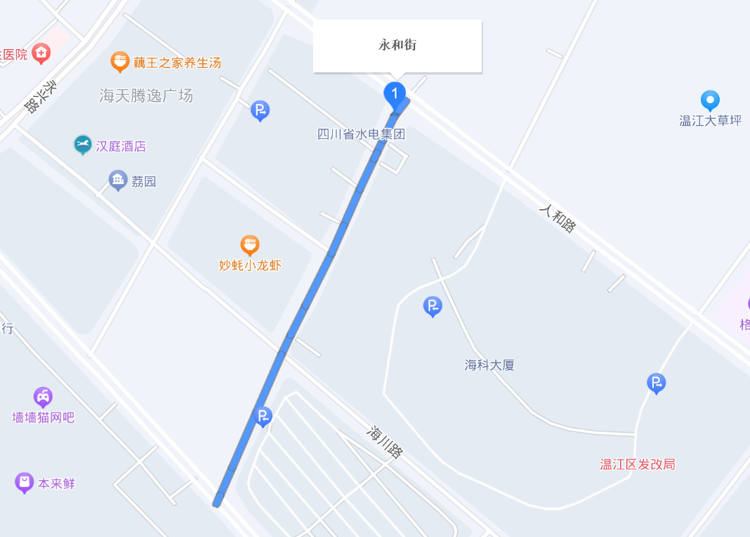 温江区永和街、温江区海科路东段、温江区学府路南段、温江区学府路北段、温江区南熏大道三段、温江区南熏大道二段、温江区迎晖路、温江区文武路、温江区凤溪大道北段、温江区柳台大道东段、温江区天乡路二段、温江区江宁南路、温江区花土西街、温江区同兴西路、温江区南浦路西段、温江区凤溪大道南段、温江区芙蓉大道三段、温江区凤溪大道中段