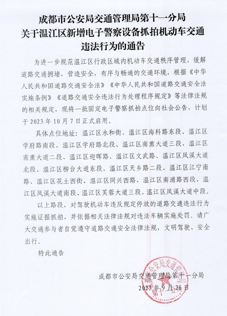 @司机朋友 注意!今日起,温江这些道路将新增点位抓拍交通违法行为