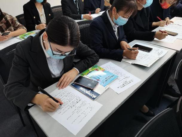 会场首先由老师就成都市生活垃圾分类公共知识与管理实务进行理论授课,内容涉及公共机构、居民小区等不同场景,涵盖生活垃圾分类投放、收集、运输、处置四个环节,以形象生动、直观的方式普及生活垃圾分类法规知识、常识技巧等,指导社区、物业工作人员准确高效开展垃圾分类工作。为提高授课实效,现场趁热打铁对参训人员进行了随堂测试,所有人员都埋头认真答题,检测自己掌握情况。